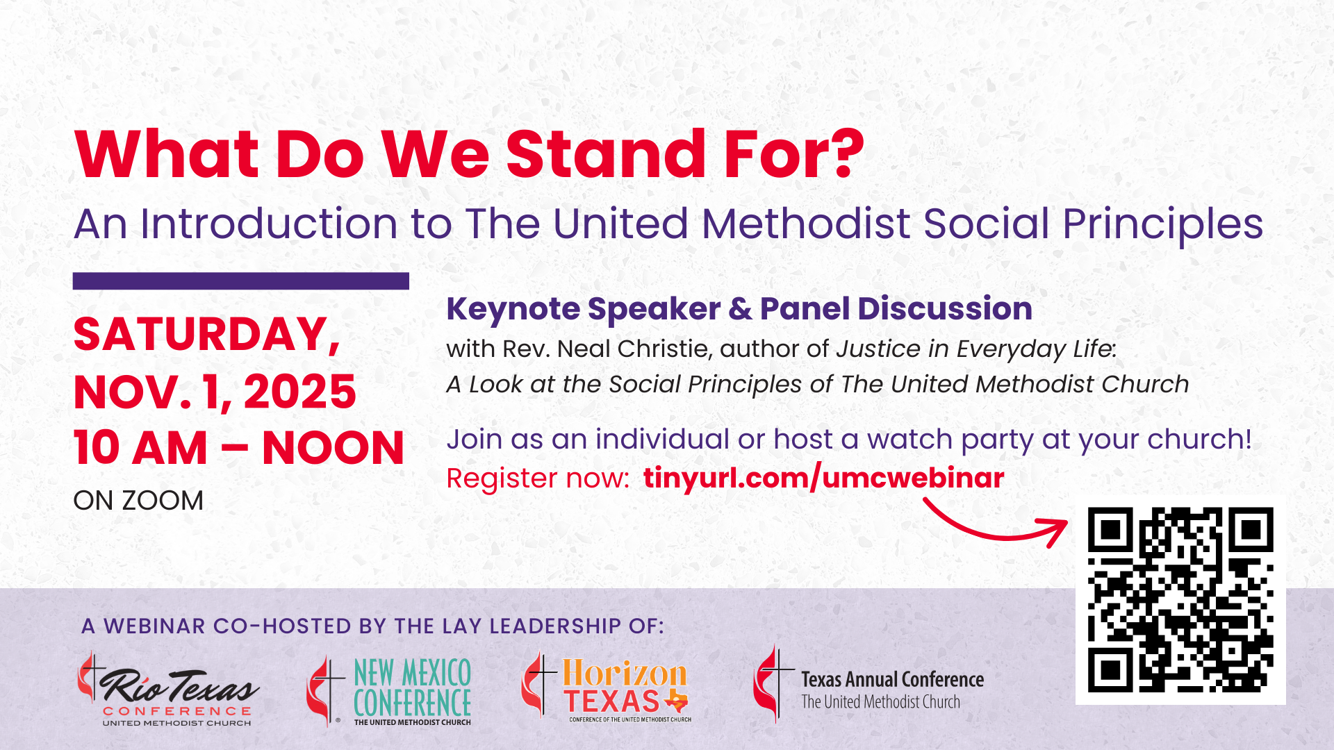 Hear from keynote speaker, Rev. Neal Christie, author of Justice in Everyday Life: A Look at the Social Principles of The United Methodist Church and principal of the The Religious Nationalisms Project. A facilitated discussion with panelists from the conferences will follow the presentation.