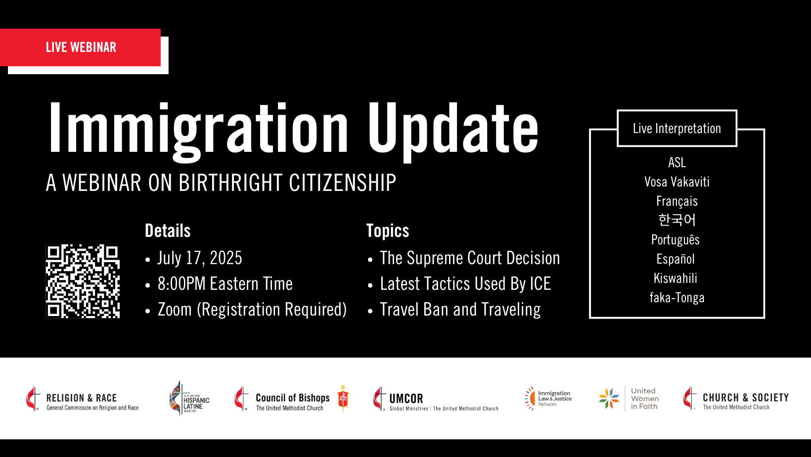 In response to the recent Supreme Court decision related to Birthright Citizenship, an alliance of United Methodist general agencies, the United Methodist Council of Bishops, and partner organizations is hosting a live webinar on: