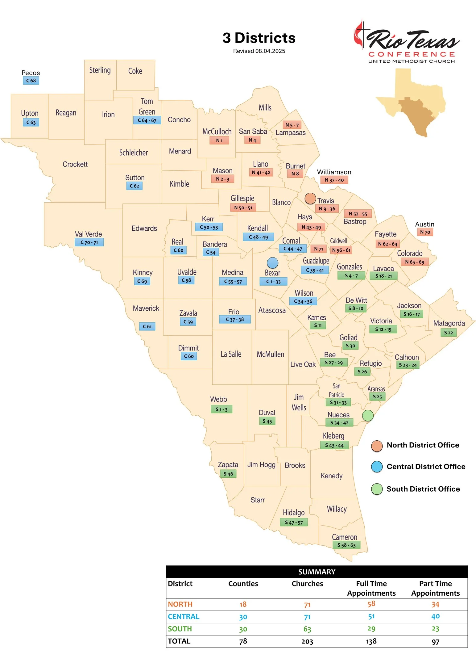 The new district offices are located in Corpus Christi, San Antonio, and Austin.