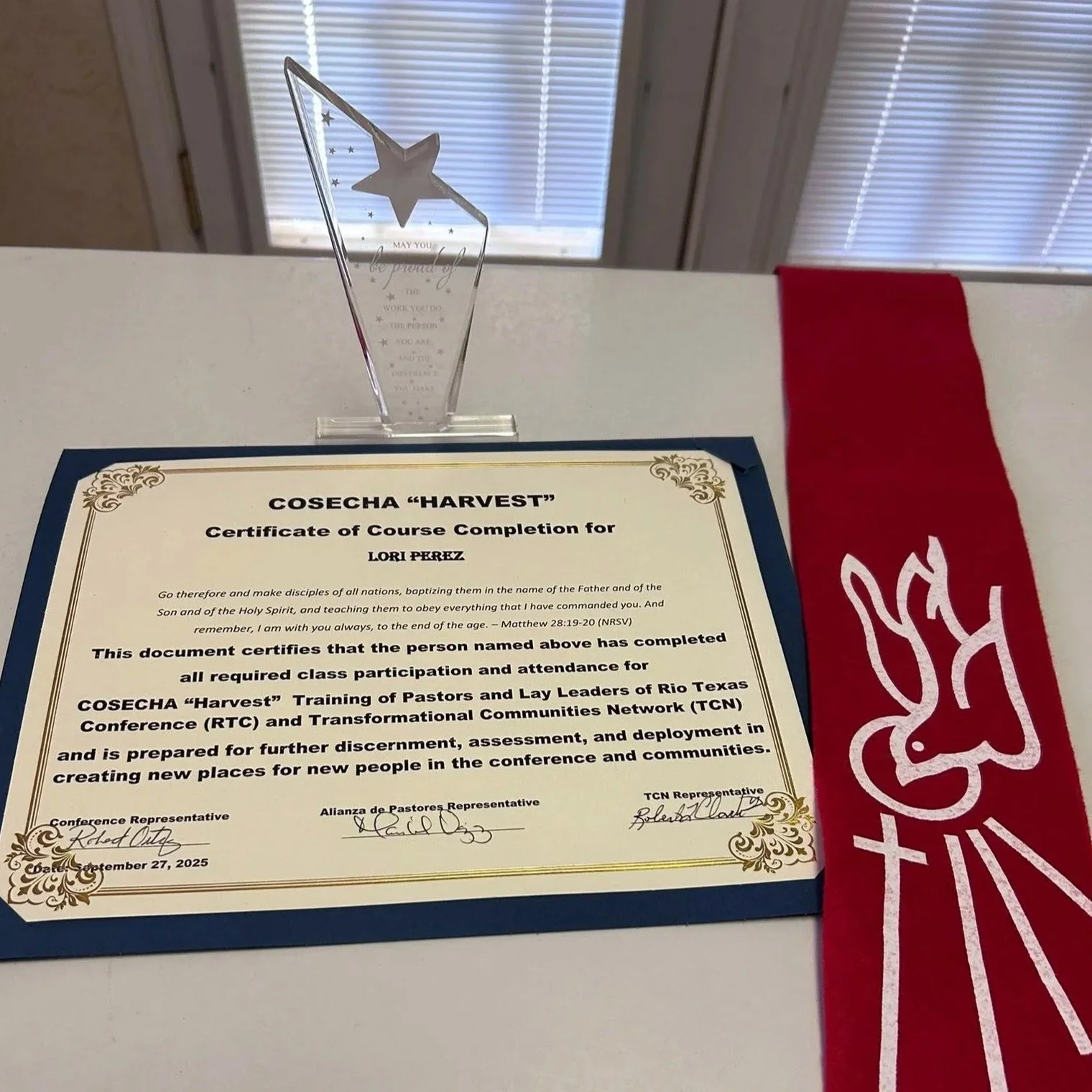 On Saturday, September 27, 2025, we celebrated FIESTA! It was the graduation of COSECHA “Harvest,” a one-year program that equips pastors and lay leaders in the Hispanic Churches of the Rio Texas Conference.
