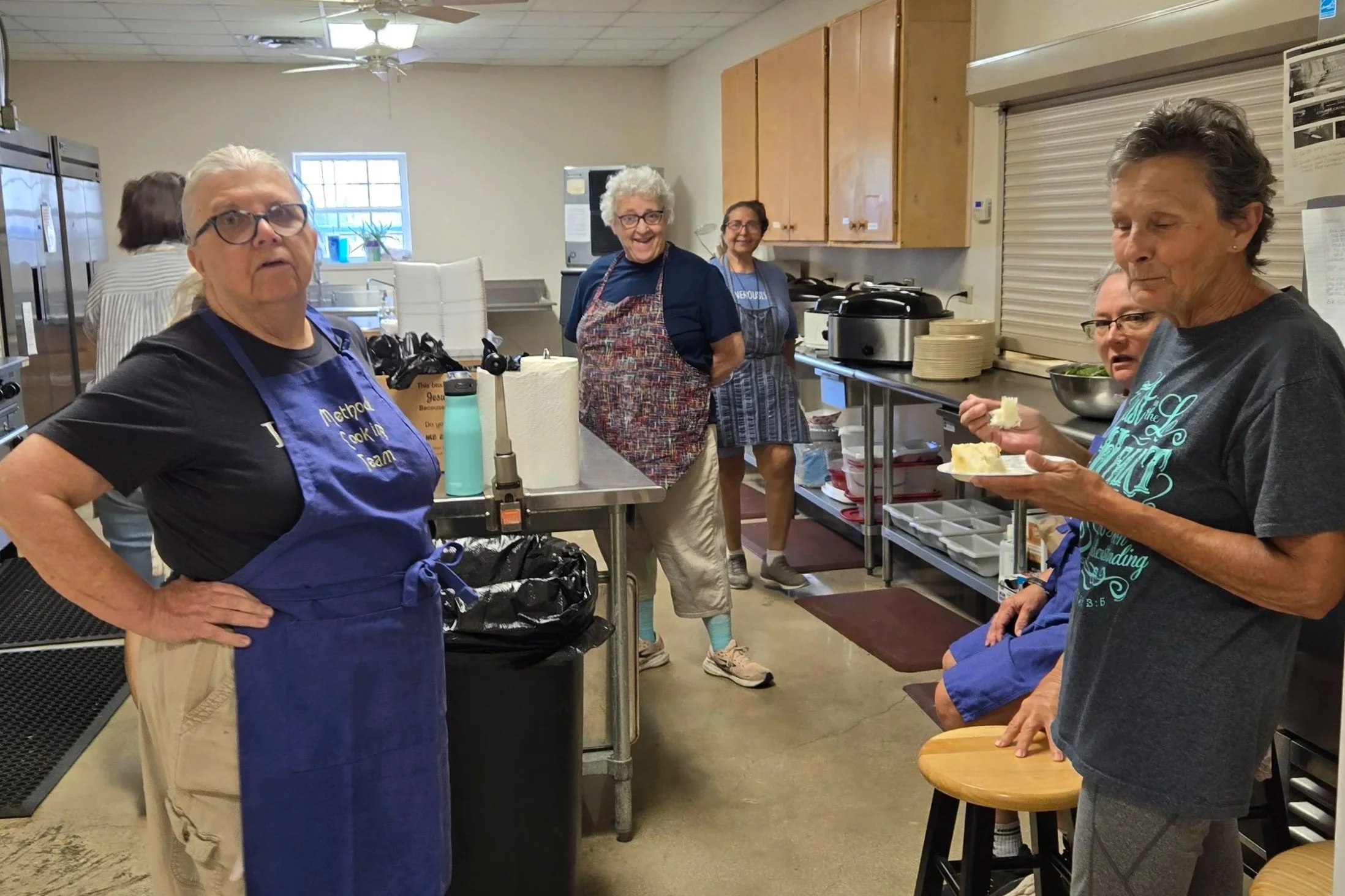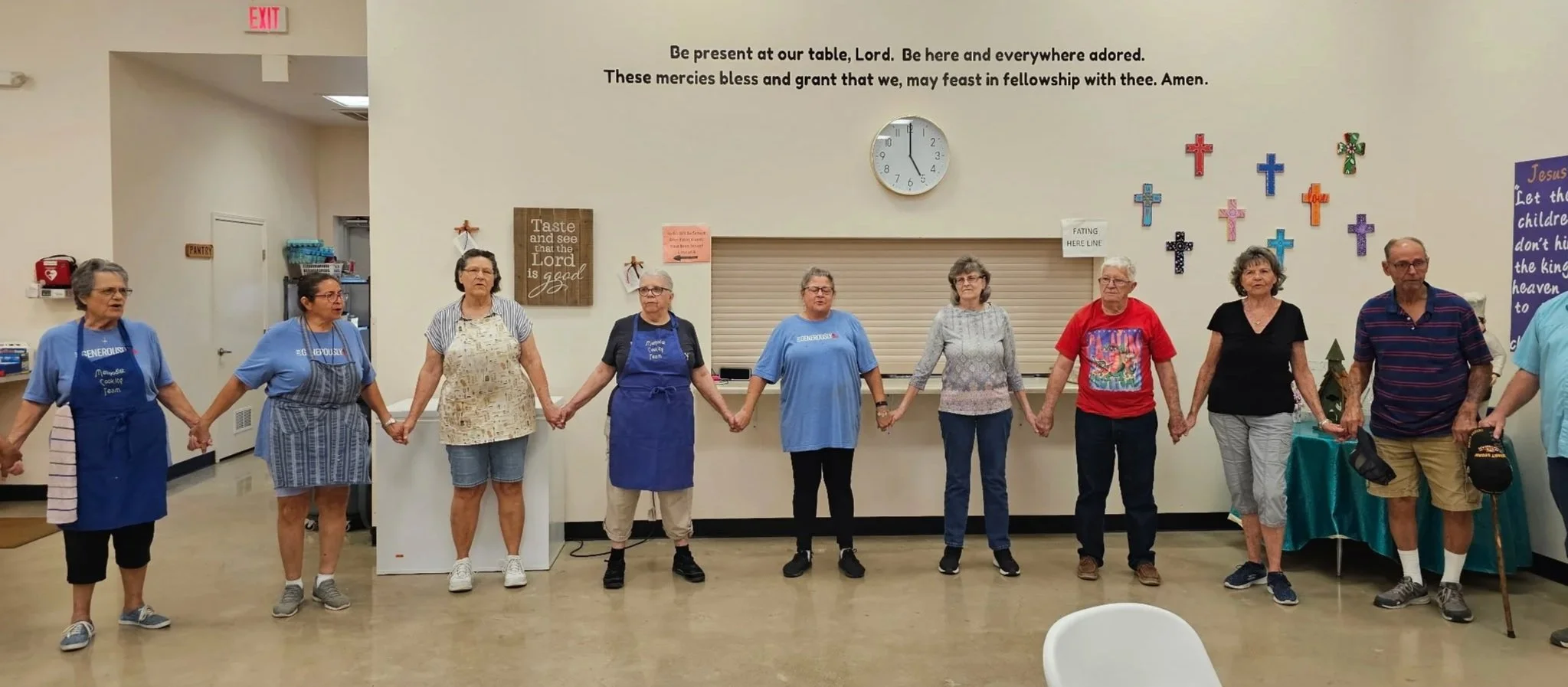 The church volunteers—mostly members—prepare and serve the meals. About 10 volunteers help each week, and even attendees pitch in with cleanup. The ministry is entirely donation-driven, with no financial support from the church budget. Food is sourced from Hill Country Daily Bread in Boerne, which partners with the San Antonio Food Bank, and additional supplies are purchased from Restaurant Depot. Salad is a weekly staple, as it’s highly requested.