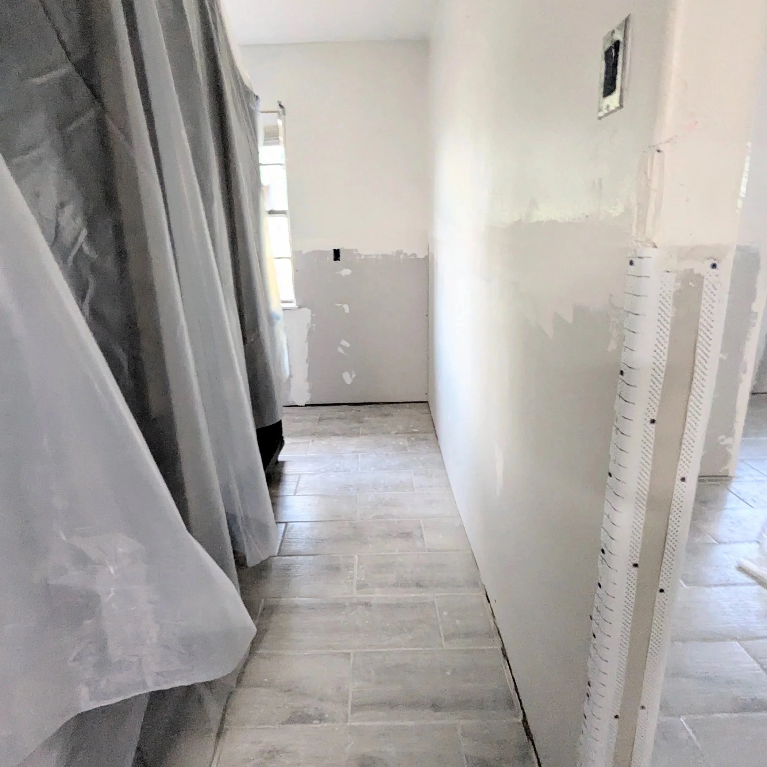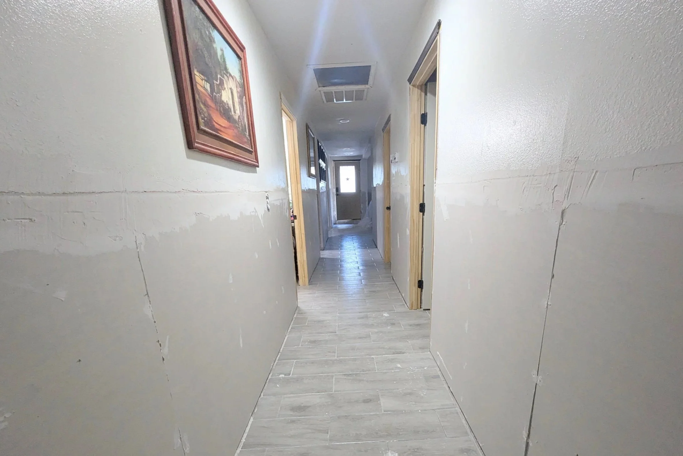 Hallway with new drywall. Photo courtesy of rosa Villanueva.