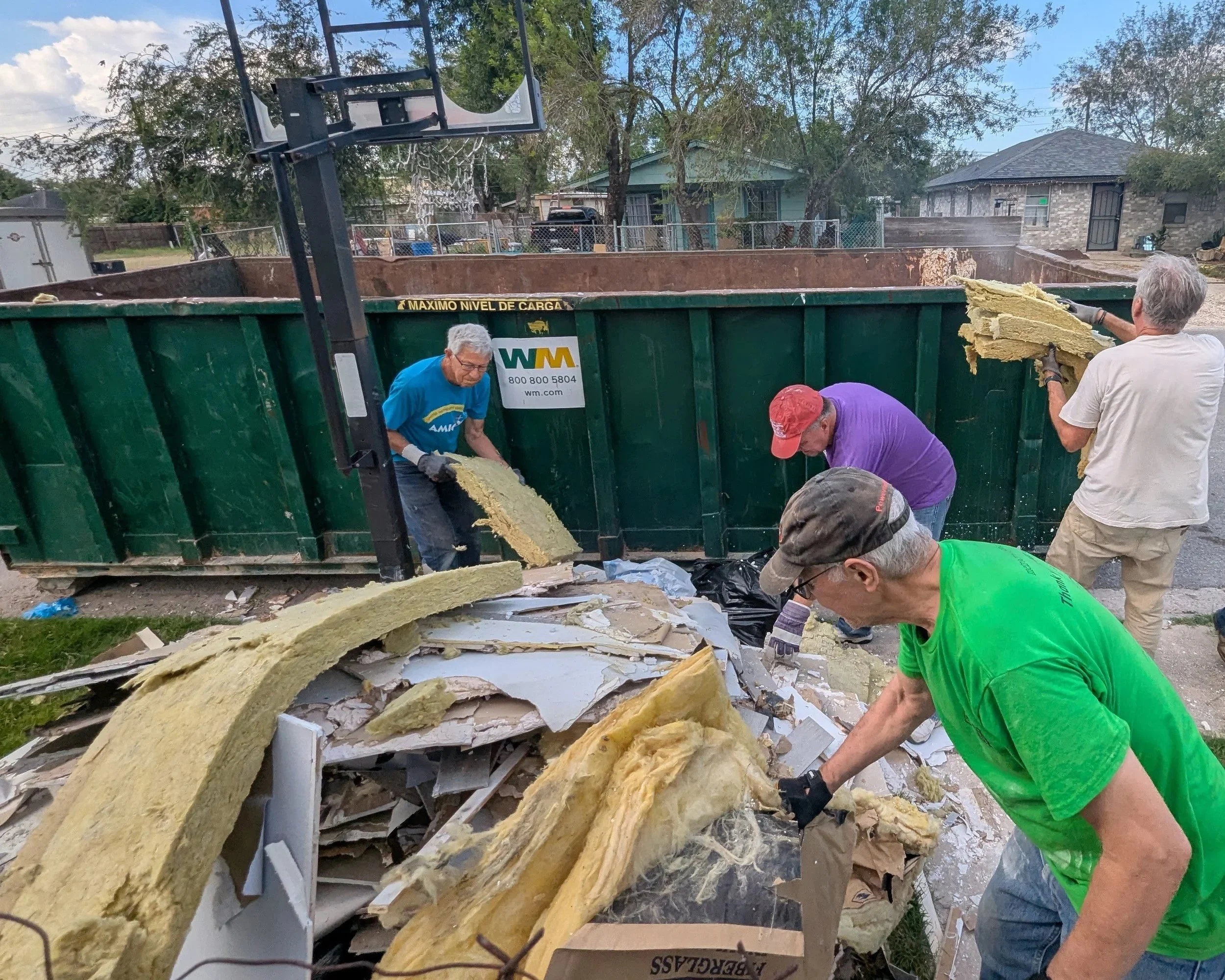 Volunteers loading debris into dumpster. Photo courtesy of rosa Villanueva.