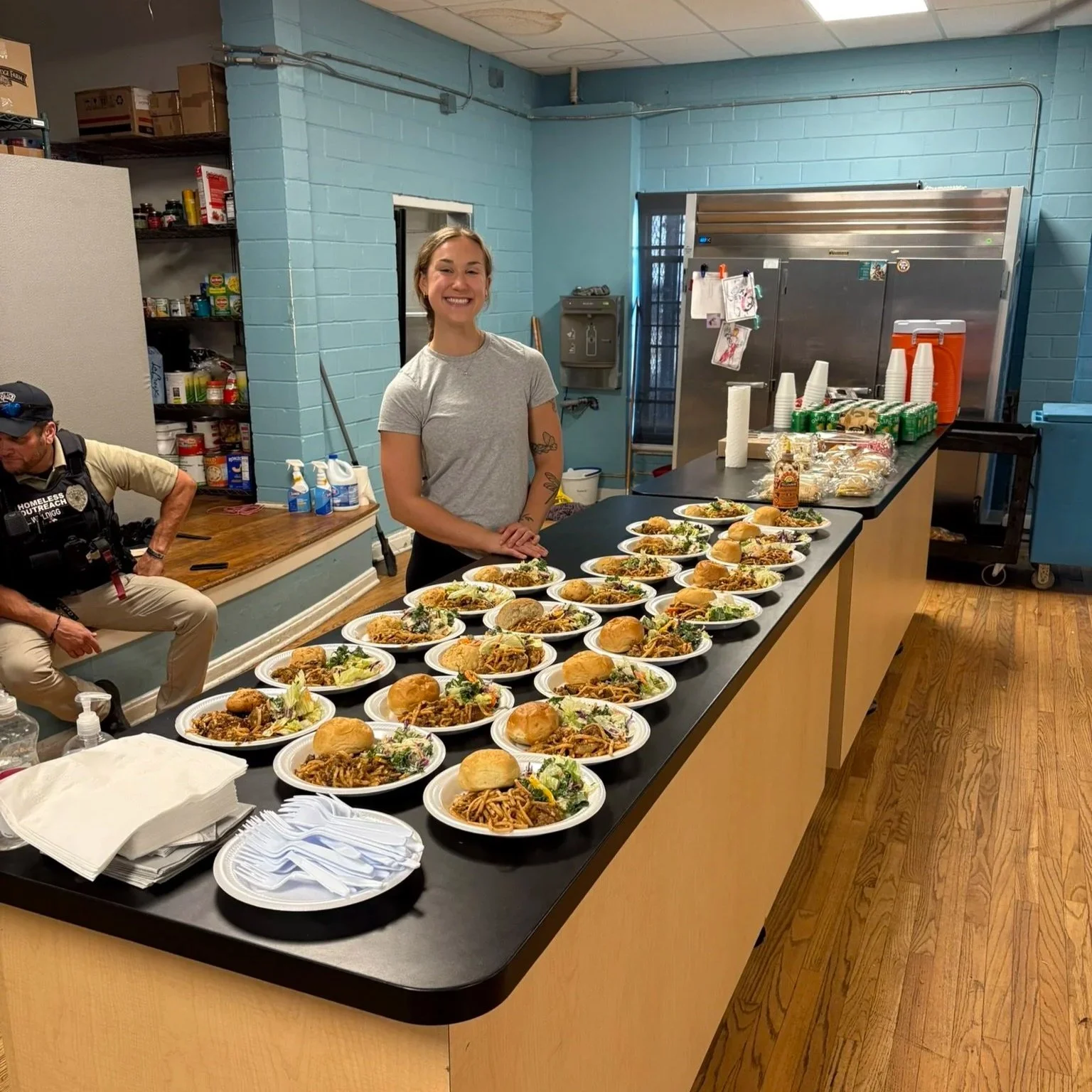 Volunteer with dinner prepared. Photo courtesy of jessica cain.