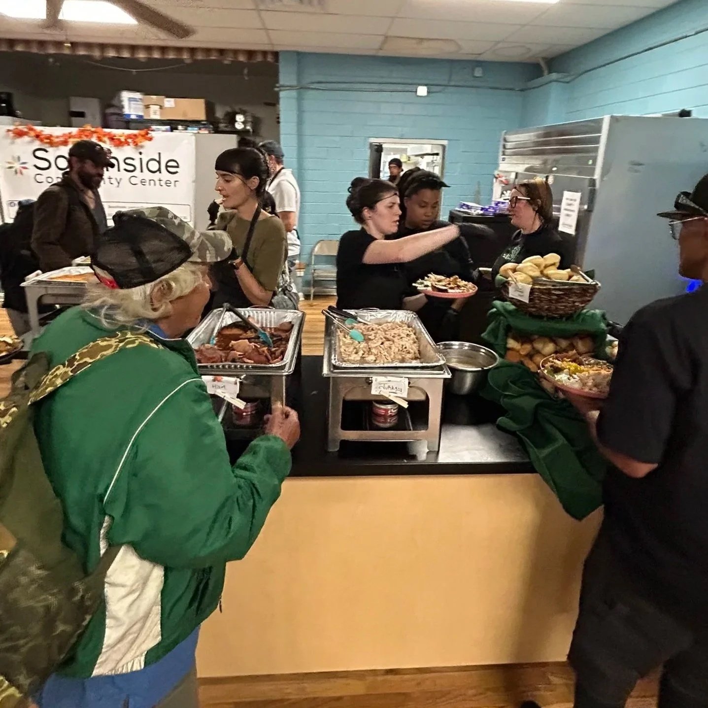 Southside community center Friendsgiving serving line. photo courtesy of Jessica Cain.